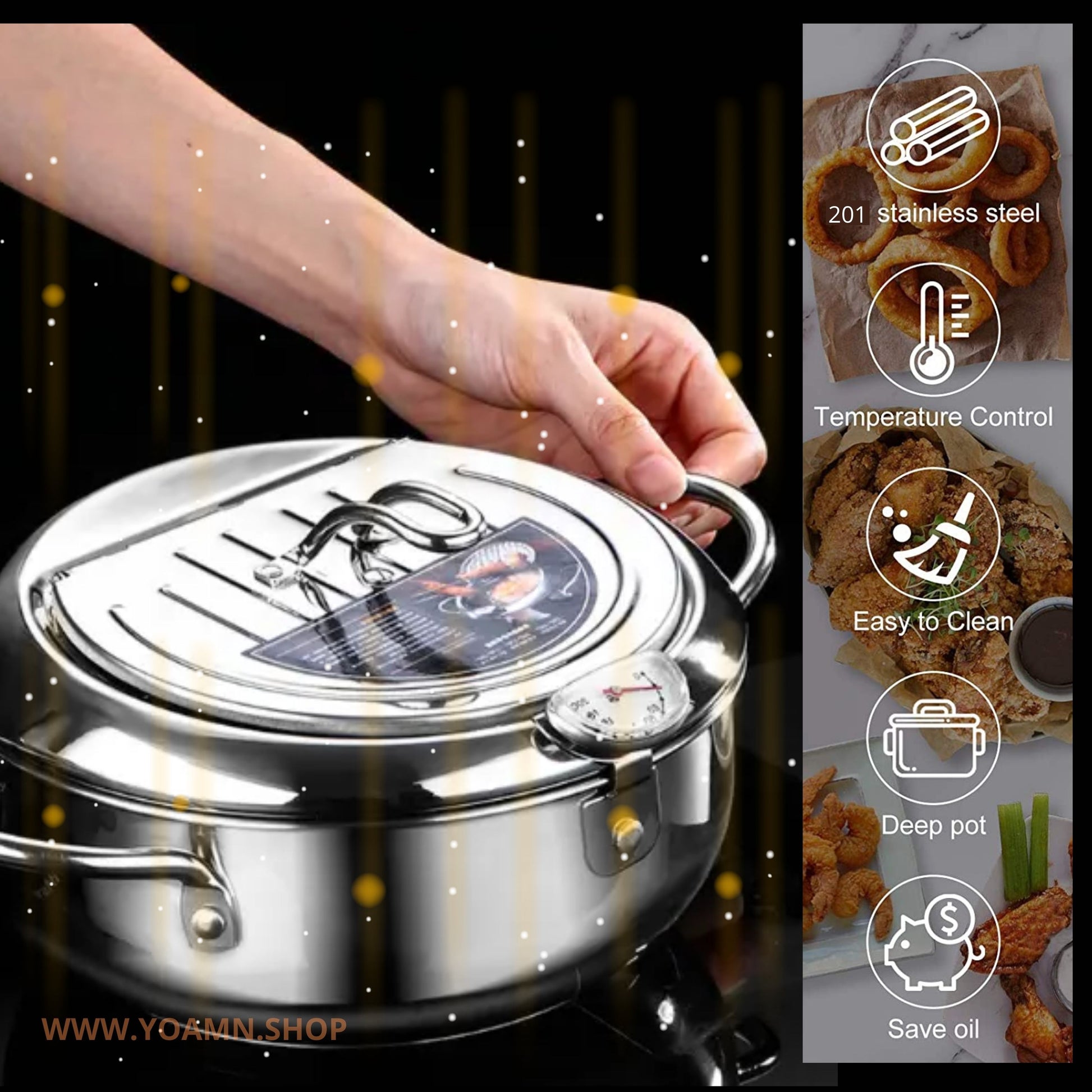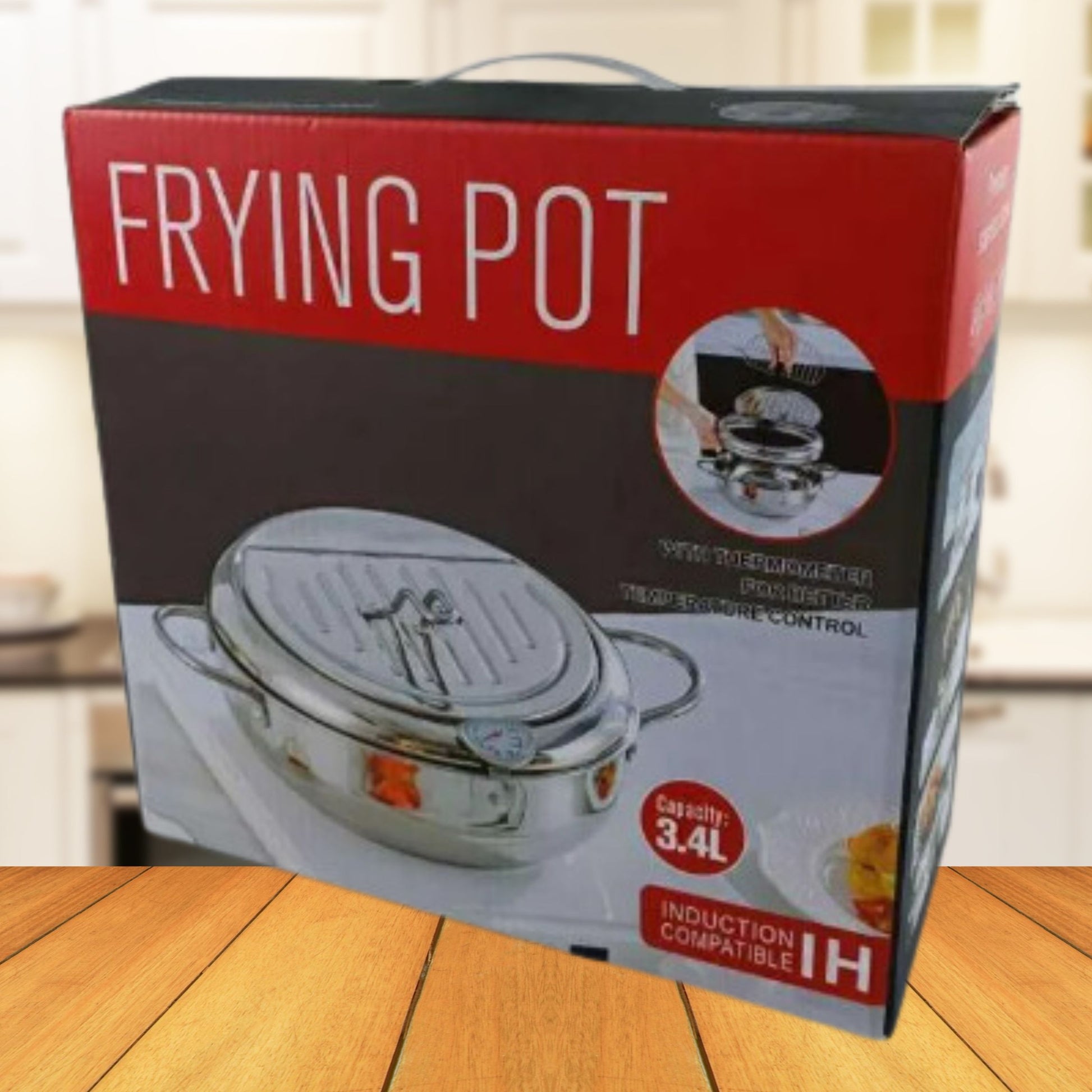 Con nuestra olla con termómetro, cada platillo frito, desde pollo broaster hasta churros, alcanza su punto perfecto de cocción, asegurando siempre la textura crujiente que todos aman. Ideal para cualquier tipo de estufa y diseñada con materiales duraderos, esta olla transforma tu cocina en un verdadero rincón gourmet."